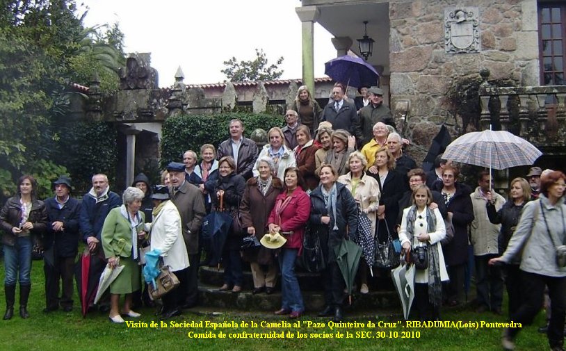 Enlace a las fotografías de la visita al jardín y las camelias del Pazo Quinteiro da Cruz y de la comida de confraternidad de los miembros de la Sociedad Española de la Camelia que realizaron la visita el día 30 de Octubre de 2010.