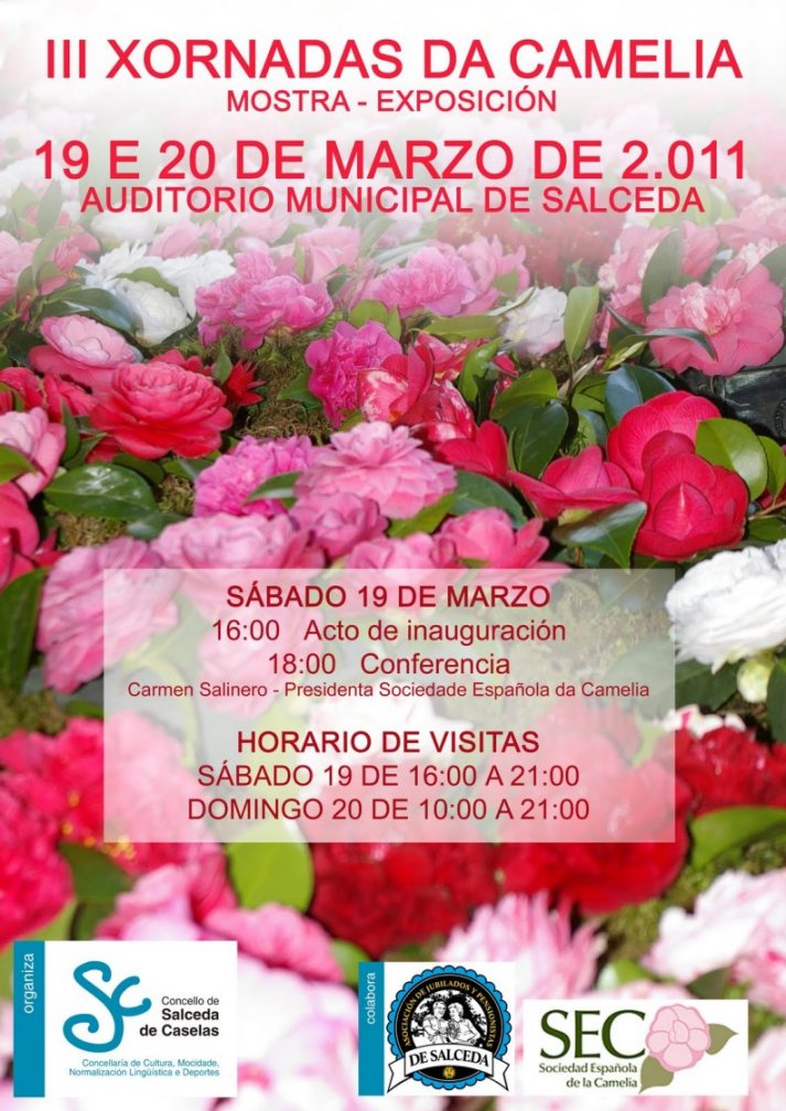 Los días 19 y 20 de Marzo de 2011, se celebrará la Mostra-Exposición de las Xornadas da Camelia, en el Concello de Salceda de Caselas (Provincia de Pontevedra, a orillas del rio Miño y fronterizo con Portugal). La Exhibición de flores de camelia de una de las zonas más importantes en cultivo de planta ornamental de Galicia por su privilegiado clima, tendrá lugar en los salones del Auditorio Municipal de Salceda de Caselas.