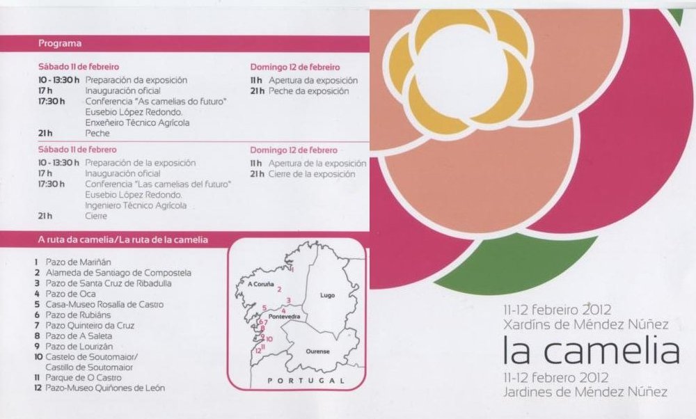 Los días 11 y 12 de Febrero se celebrará la IX Exposición LA CAMELIA Ciudad de A Coruña en los Jardines de Méndez Núñez, situados en pleno centro de la ciudad entre el Puerto y la hermosa calle de La Marina. Un lugar hermosísimo para una siempre magnífica exposición de camelias.