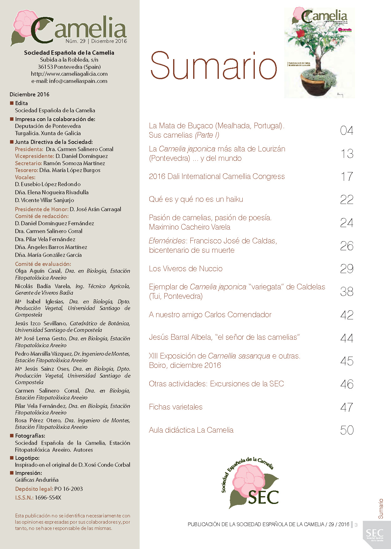 IV Exposición da Camelia en PADRÖN y Concurso de flor de Camela. Días 21 y 22 de Enero de 2017. Convento do Carme (Padrón, Provincia de A Coruña). Conferencia sobre la marcha de los trabajos de investigación sobre *Ciborinia cameliae, el día 21 de Enero a las 5 de la tarde, por parte de los…